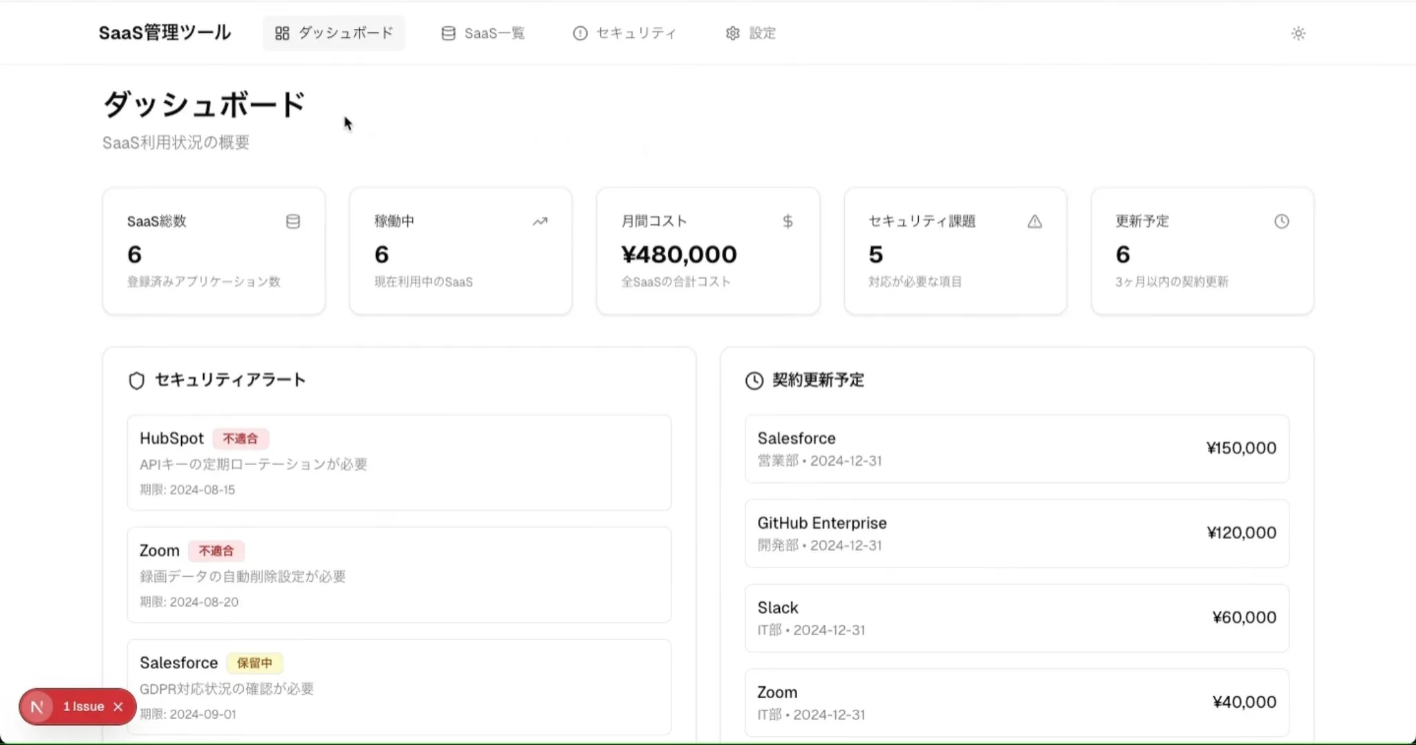 計1年間
